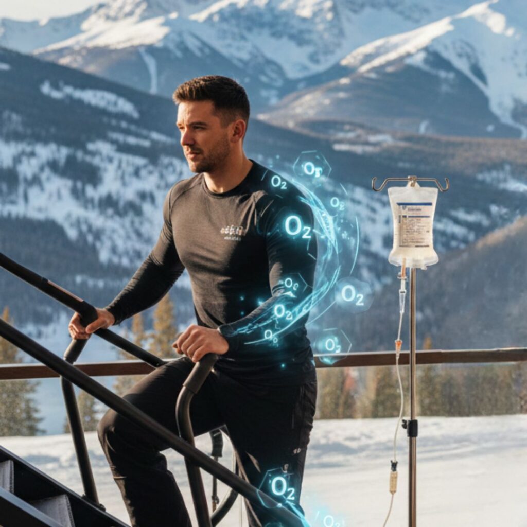 Oxygen is the primary fuel for endurance, yet it remains scarce at 11,000 feet. Lower pressure means your blood carries less oxygen to working muscles, leading to premature fatigue and “heavy legs.” We utilize specialized protocols that support circulatory health and red blood cell efficiency. Enhancing how your body carries oxygen allows for sustained energy during long climbs.