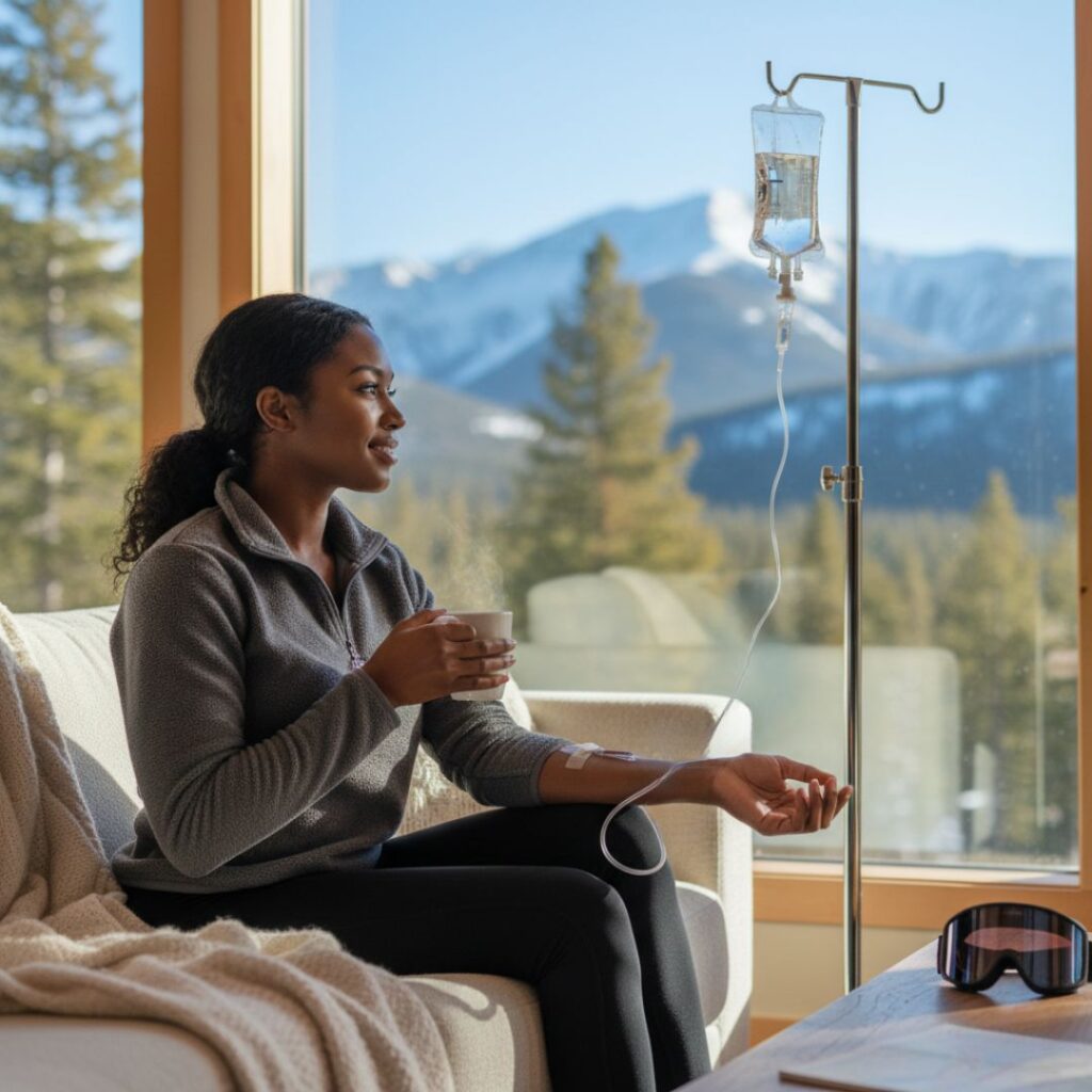 Rapid fluid loss is an invisible consequence of Aspen’s dry, high-altitude climate. When we breathe faster to compensate for lower oxygen levels, we lose significant moisture through respiration. Standard oral hydration often falls short because the digestive system processes water slowly. Our mobile IV therapy bypasses the gut to restore essential fluids and electrolytes instantly.